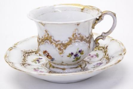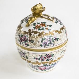 Porcelaine à décor de scènes galantes, fleurs et animaux, montur...