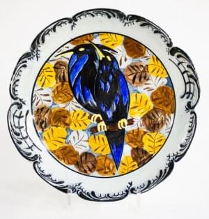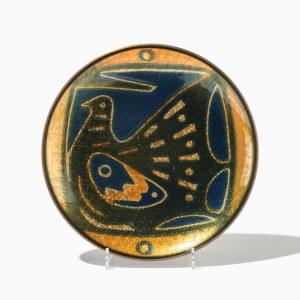 Assiette à l'oiseau, bronze émaillé, Norvège, début XXe s, D 20...