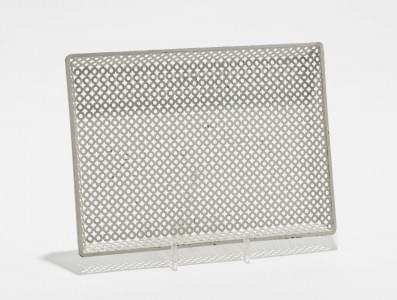 Plateau, métal perforé et laqué blanc, 34x25 cm