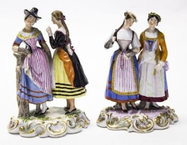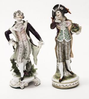 Paire de sujets en porcelaine polychrome de Capodimonte, H 15 cm
