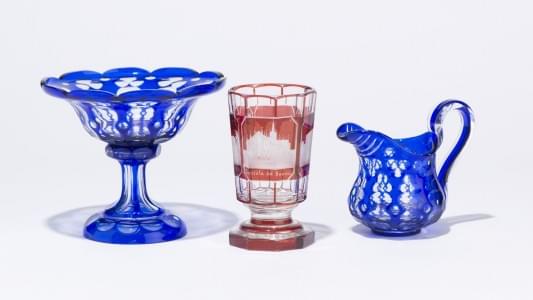 Cristal de Bohème rouge et bleu taillé, H 14 cm
