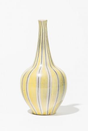 3661. Vase piriforme à col étroit à décor de stries noires et blanches...