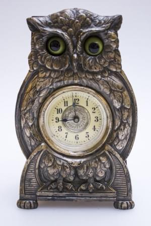Métal argenté et bois, yeux mobiles, H 17 cm