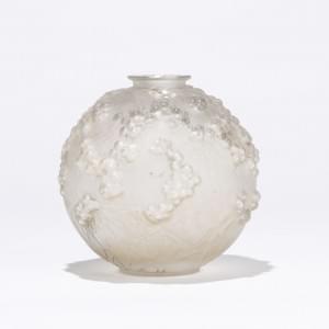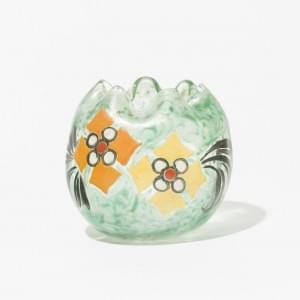 Vase boule à col pincé, verre translucide émaillé polychrome à d...