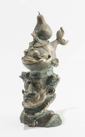 3677. Buste d'homme chapeauté d'un poisson et d'une poire