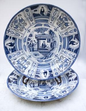 Faïence émaillée bleue sur fond blanc à décor de chinoiseries, D...
