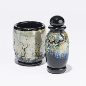 Verre de Murano à décor appliqué de rameaux sur fond marbré, cir...