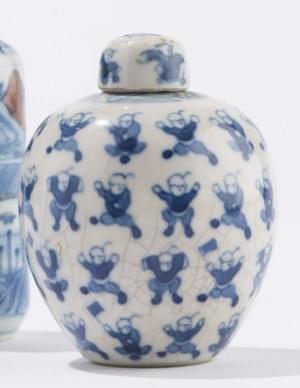 A décor aux cent enfants émaillé en bleu, Chine, marque apocryph...
