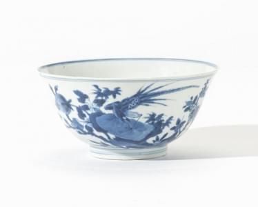 Porcelaine émaillée bleu et blanc à décor de fleurs, Chine, Comp...