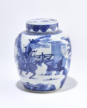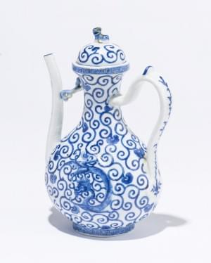 Porcelaine émaillée bleu et blanc de rinceaux, Chine, dynastie Q...