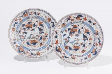 638. Paire d'assiettes à décor imari