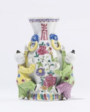 Porcelaine à décor de fleurs et d'enfants en ronde-bosse, Chine,...