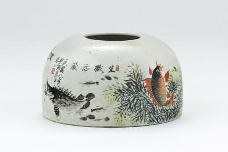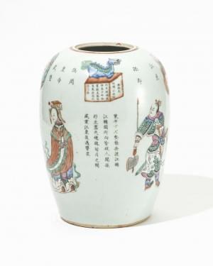 Porcelaine émaillée polychrome à décor de personnages et textes...
