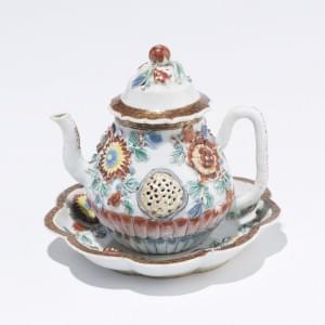 648. Théière famille rose avec son présentoir