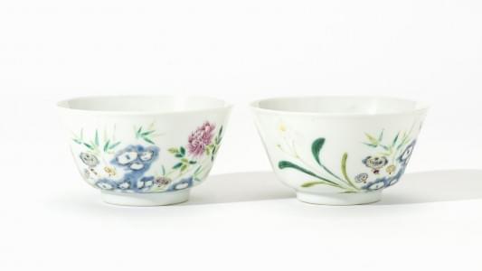 Porcelaine coquille d'oeuf émaillée polychrome à décor de fleurs...
