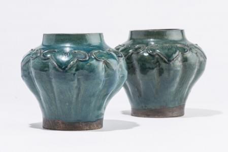712. Deux vases couverts; l'un à décor de félins en relief, l'autre s...