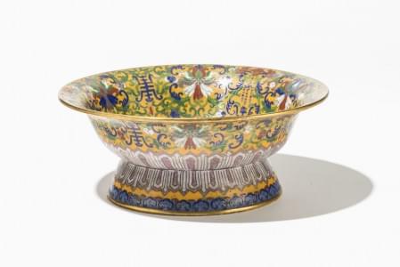 Cuivre et émaux cloisonnés à décor de végétaux et caractères, Ch...
