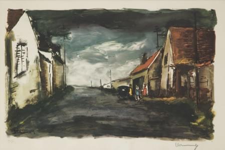Rue de village, lithographie signée et numérotée, 38x57 cm