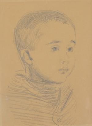 Portrait de jeune garçon, mine de plomb sur papier, 21x15 cm. Pr...