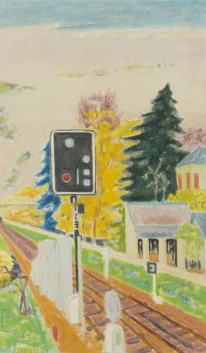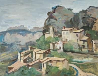 Dans les vignes, huile sur toile, signée et datée 81, 46x55 cm