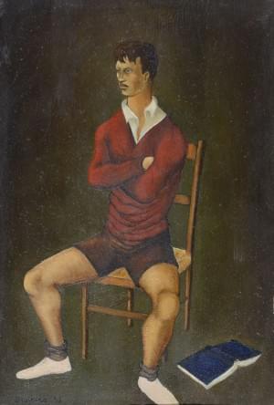 Jeune homme aux bras croisés, huile sur panneau signée et datée...