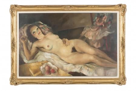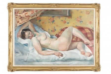 Nu allongé, huile sur toile, signée et datée 1934, 102x145 cm