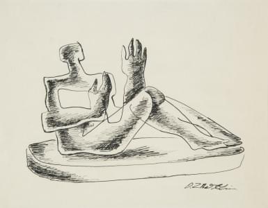 Personnage alangui, encre sur papier, signée, 24x31 cm