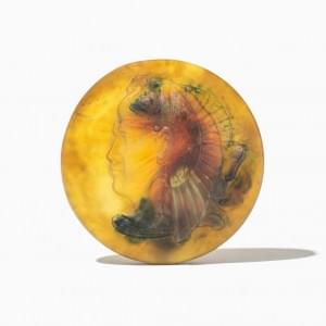 Médaillon figurant un égyptien de profil, pâte de verre, D 7 cm