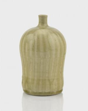 Bouteille à saké, grès émaillé à coulures vert eau sur fond beig...