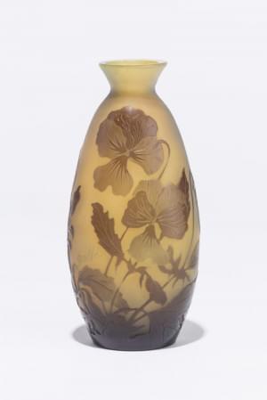 Verre multicouche dégagé à l'acide à décor de pensées mauves sur...