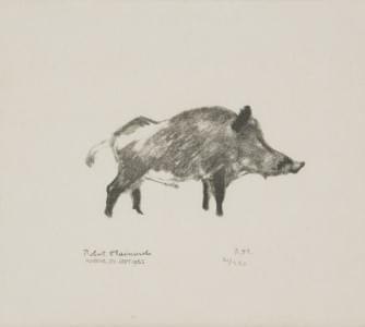 Sanglier, Ponikve, gravure sur bois, monogrammée, datée 1953 et...