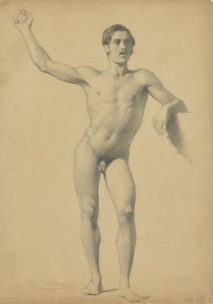 Nu académique, mine de plomb sur papier, signé et daté 1885, 32x...