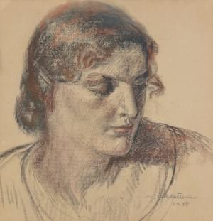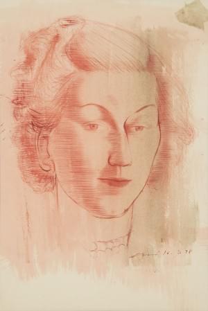 Portrait de femme, 1938, crayon gras et sanguine, signé et daté,...