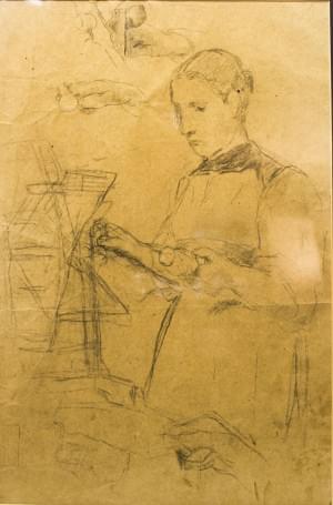 Jeune fille dessinant, fusain sur papier, 24x36 cm. Au dos, atte...
