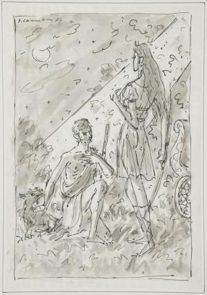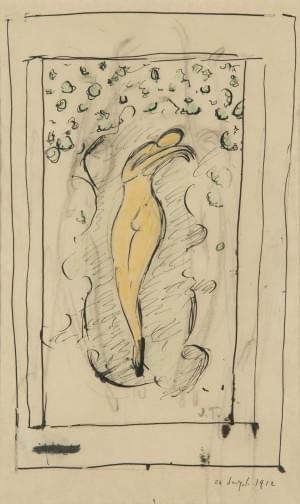 Etude de femmes, encre, fusain et crayon gras sur papier, monogr...