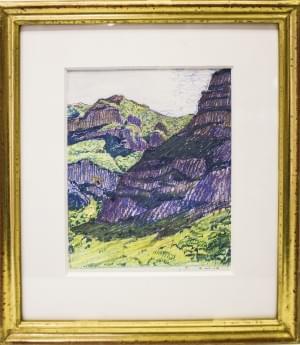 Paysage montagneux, craie sur papier, signée et datée 19 juillet...