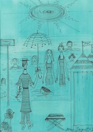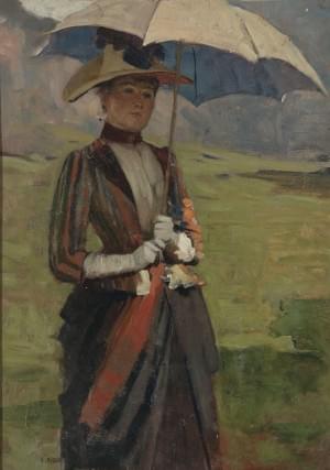 Jeune femme à l'ombrelle, huile sur pavatex, 39x28 cm