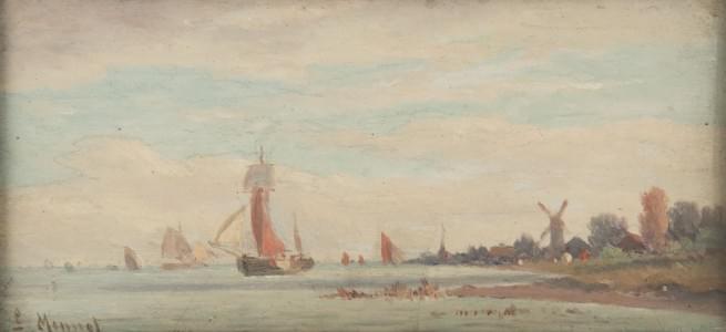 Retour de la pêche, huile sur toile, signée, 49x64 cm