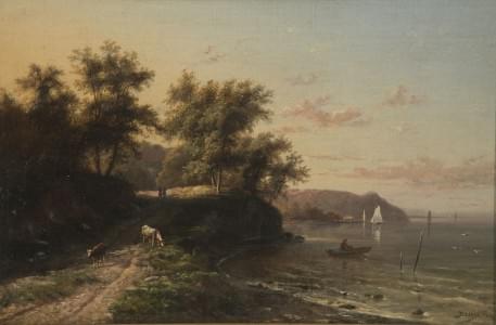 Vue sur le lac Léman, huile sur toile signée, 54 x 45 cm