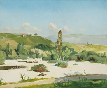 L'Allondon à Malval, huile sur panneau, signée et datée 45, 22x2...