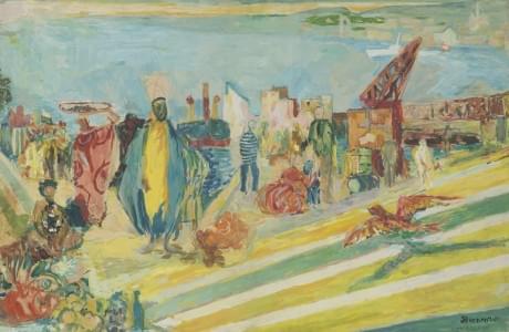 Grenade et la mer, huile sur panneau, signée et datée 46, 50x44...