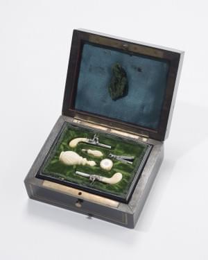 Acier et ivoire, dans un coffret en marqueterie boulle avec acce...