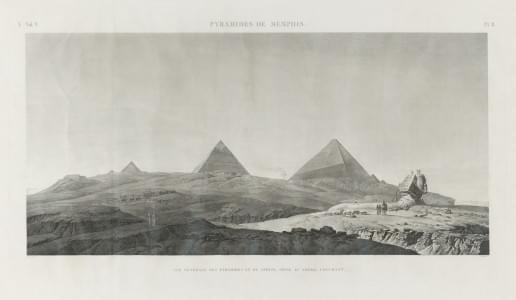 Pyramides de Memphis, vue générale des pyramides et du sphinx, p...