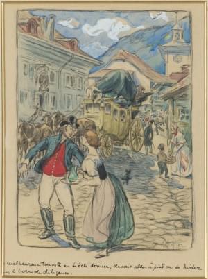 Autrefois, aquarelle et gouache sur papier, signée, 36x27 cm