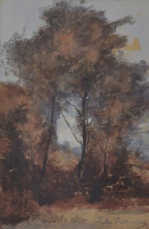 Paysage de sous-bois, aquarelle sur papier, signée, 18x12 cm
