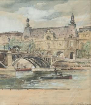 Le Pont des Saints-Pères, aquarelle sur papier, signée et datée...