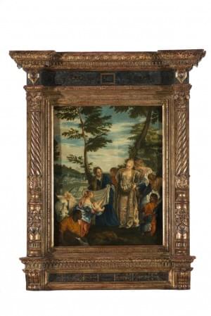 Moïse sauvé des eaux, huile sur toile, 54x43 cm, cadre de style...