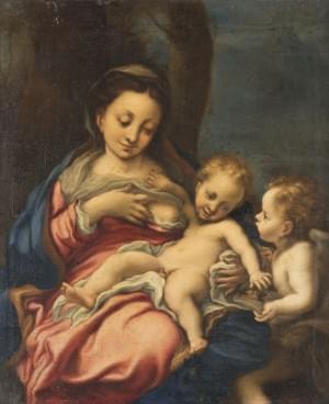 Vierge à l'enfant, huile sur toile, 36,5x30,5 cm