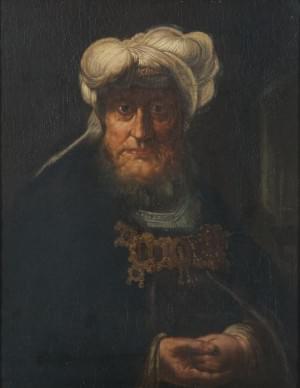 Rabbin, copie d'après l'original conservé à Chatsworth, huile su...
