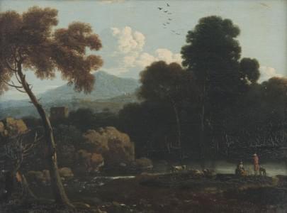 Paysage aux rochers, sanguine, ancienne étiquette au dos avec ré...